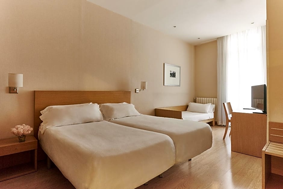 This quadruple room has views of Gran Vía Avenue. It features a satellite TV, a safe, desk and a telephone. It has central heating and comes with a private bathroom with hairdryer.